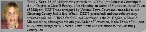 The 53-year-old was arrested, charged with felony criminal contempt, and sent to jail, where she posted bail. The very next day, Kent allegedly violated the order again. She was arrested and charged with misdemeanor criminal contempt.